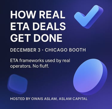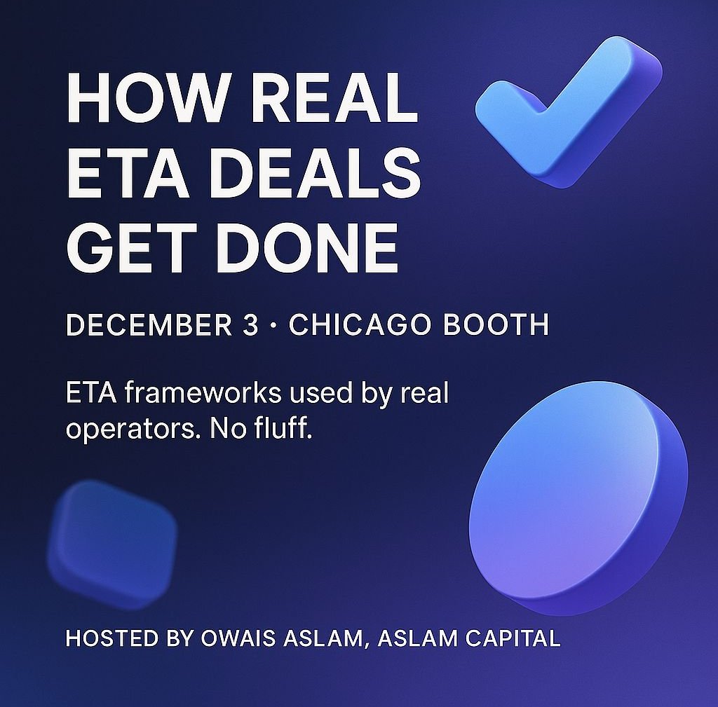 Owais Aslam recently spoke at Chicago Booth about what Aslam Capital is building and how the team is approaching the auto services market. He described the session as energizing - driven by thoughtful questions and genuine curiosity about the operator side of entrepreneurship through acquisition.